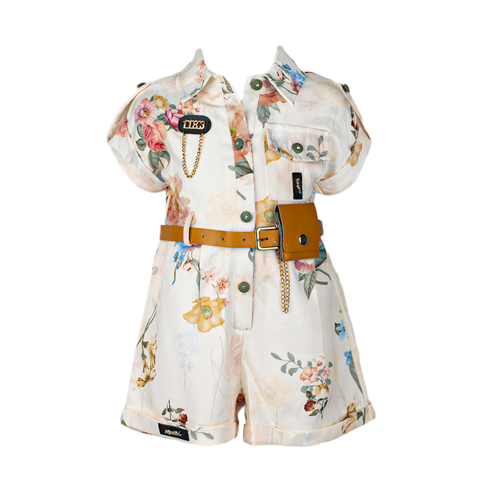 جمبسوت بناتي بجيب امامي جانبي وازرار في منتصف الصدر وحزام على الخصر بشكل حقيبة .
