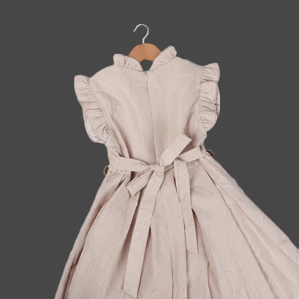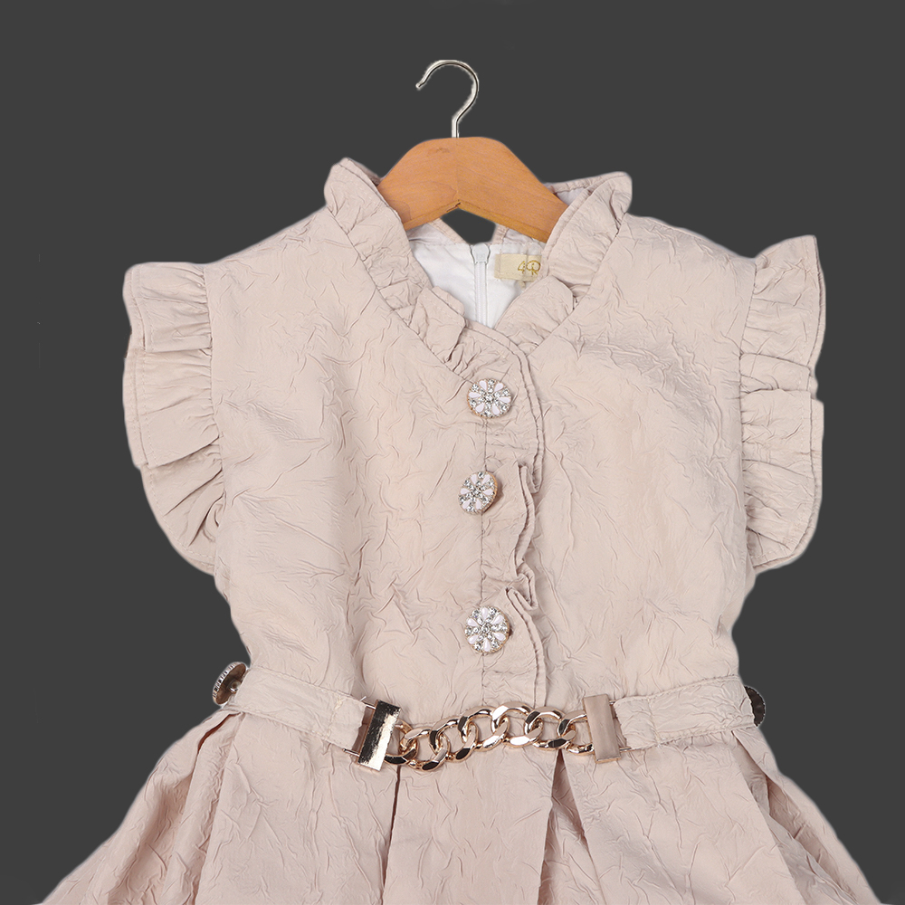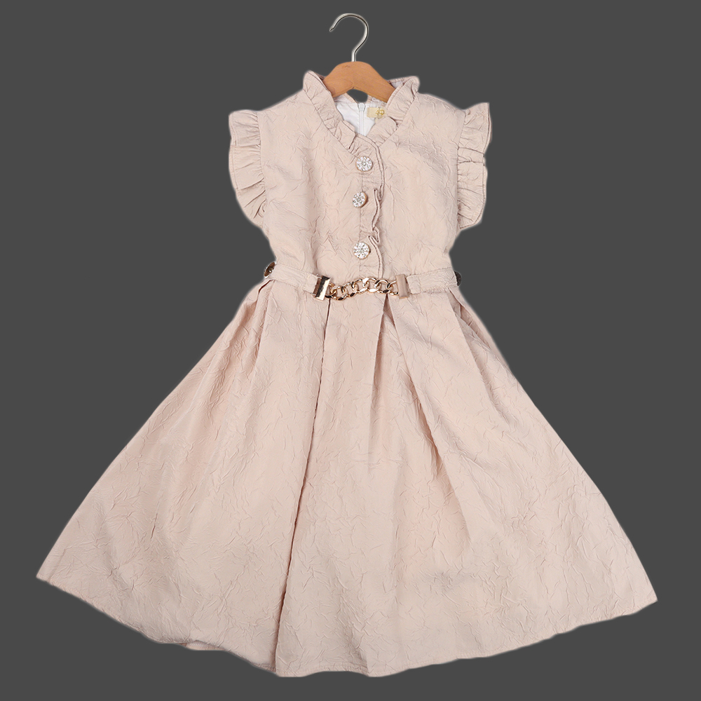 فستان بناتي أنيق بكسرات على الكتف و الياقة ، ازرار على الصدر ، تشكيلة حزام على الخصر ، كسرات على الخصر لقصة تنورة واسعة .