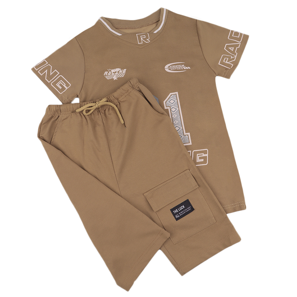طقم كاجوال شبابي مكون من تيشيرت بياقة على شكل حرف V مزينة بخطين أنيقين مع طبعات سباق عصرية ورقم 21 في الأمام وشورت بجيوب جانبية عملية ورباط خصر لمزيد من الراحة، تصميم مريح وأنيق يناسب الإطلالات اليومية