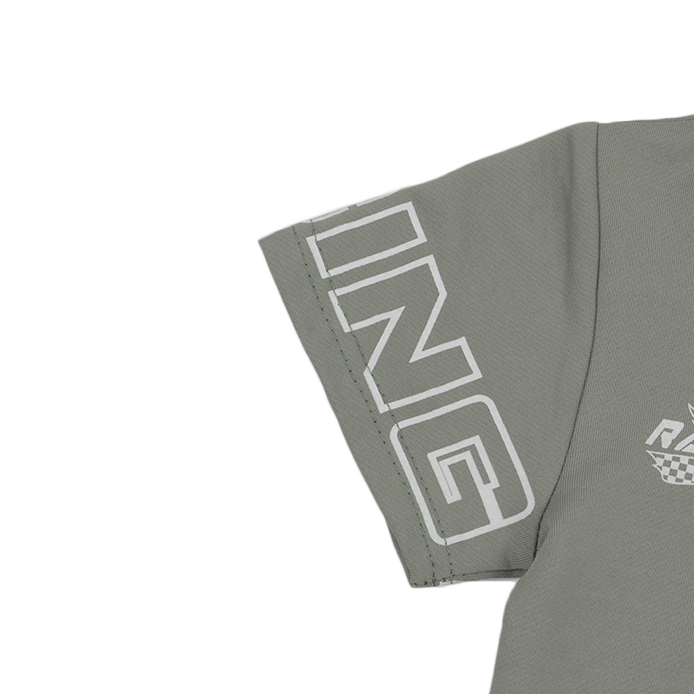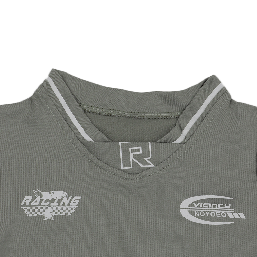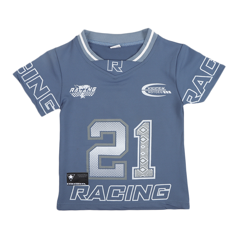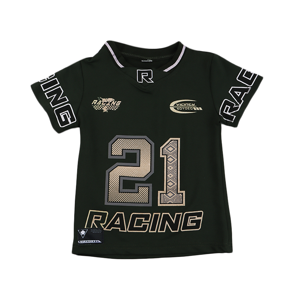 طقم كاجوال ولادي مكون من تيشيرت بياقة على شكل حرف V مزينة بخطين أنيقين مع طبعات سباق عصرية ورقم 21 في الأمام وشورت بجيوب جانبية عملية ورباط خصر لمزيد من الراحة، تصميم مريح وأنيق يناسب الإطلالات اليومية
