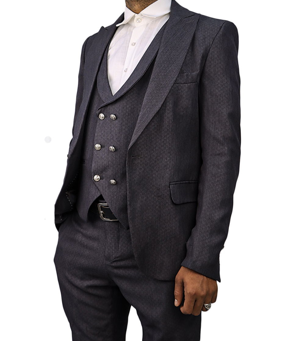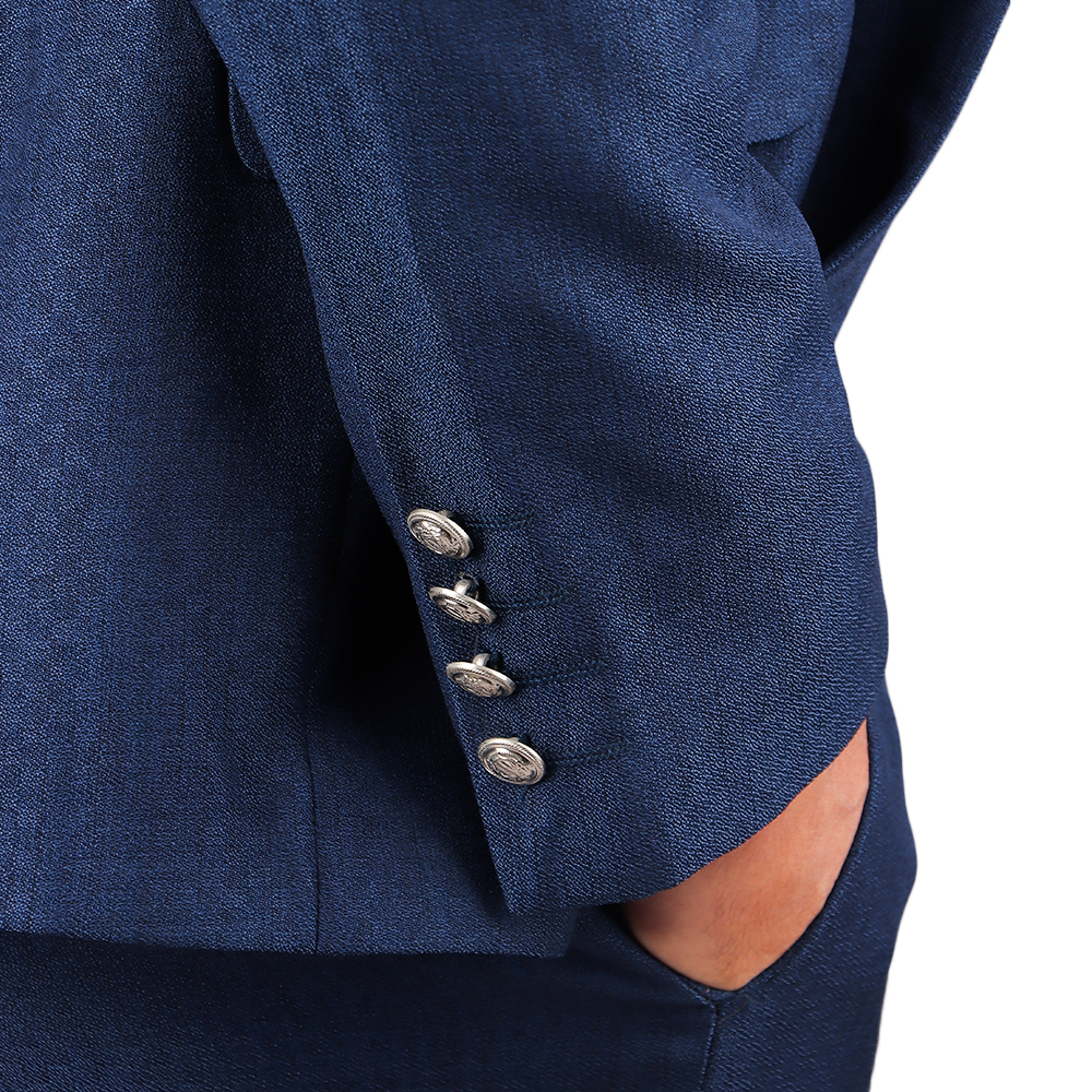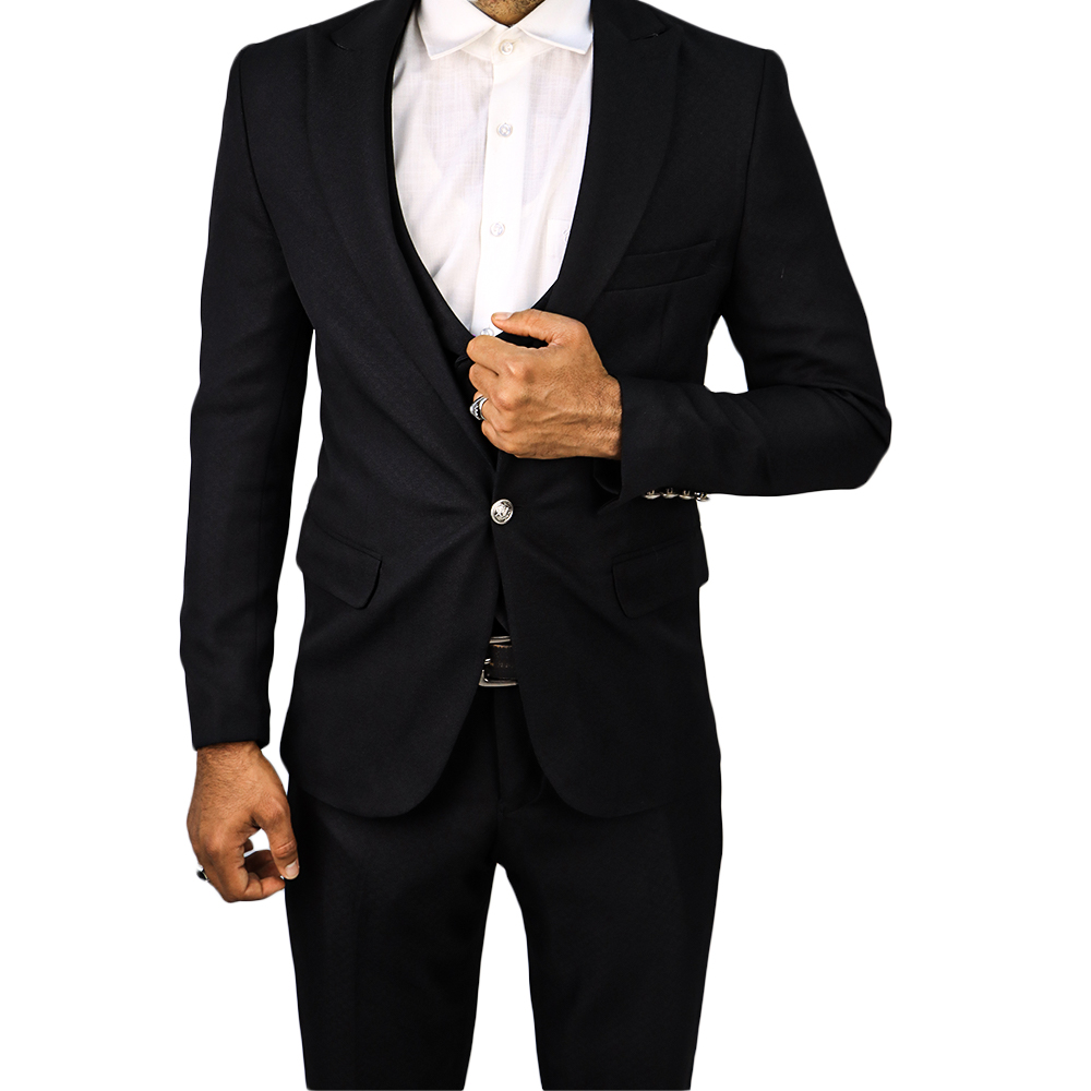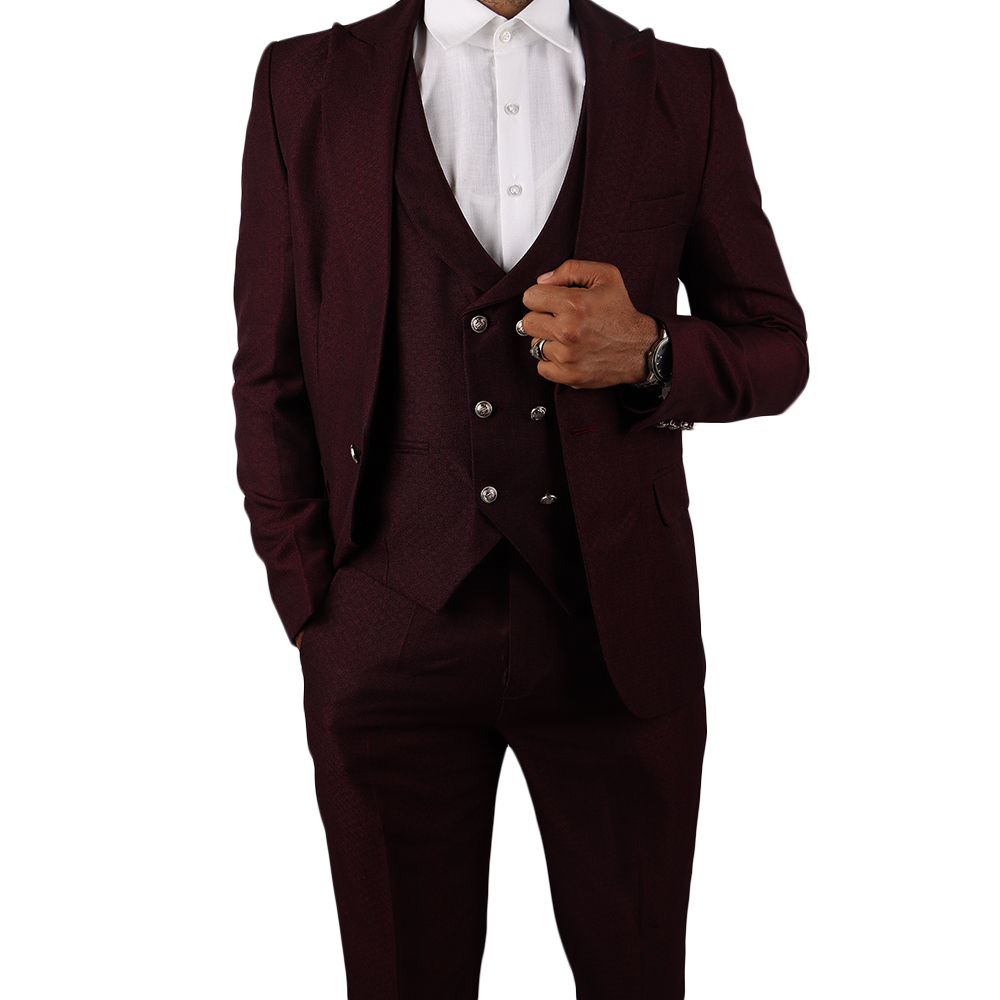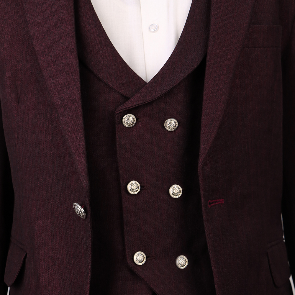 بدلة رجالية فاخرة بتصميم كلاسيكي أنيق مع صديري داخلي مزين بأزرار معدنية مميزة. خيار مثالي لإطلالة راقية في المناسبات الرسمية والحفلات والأعراس.