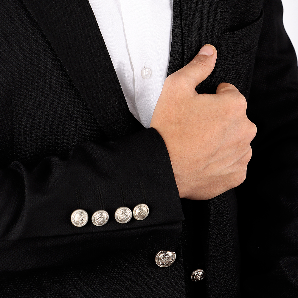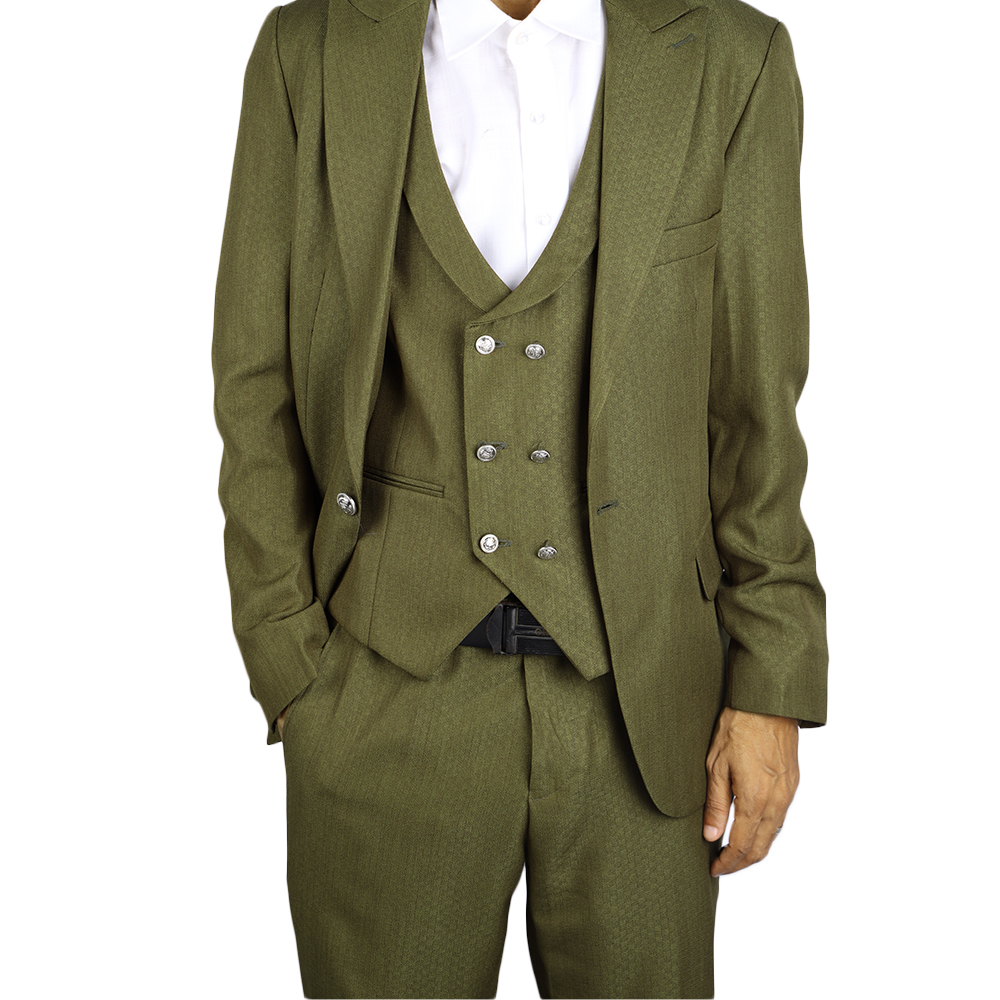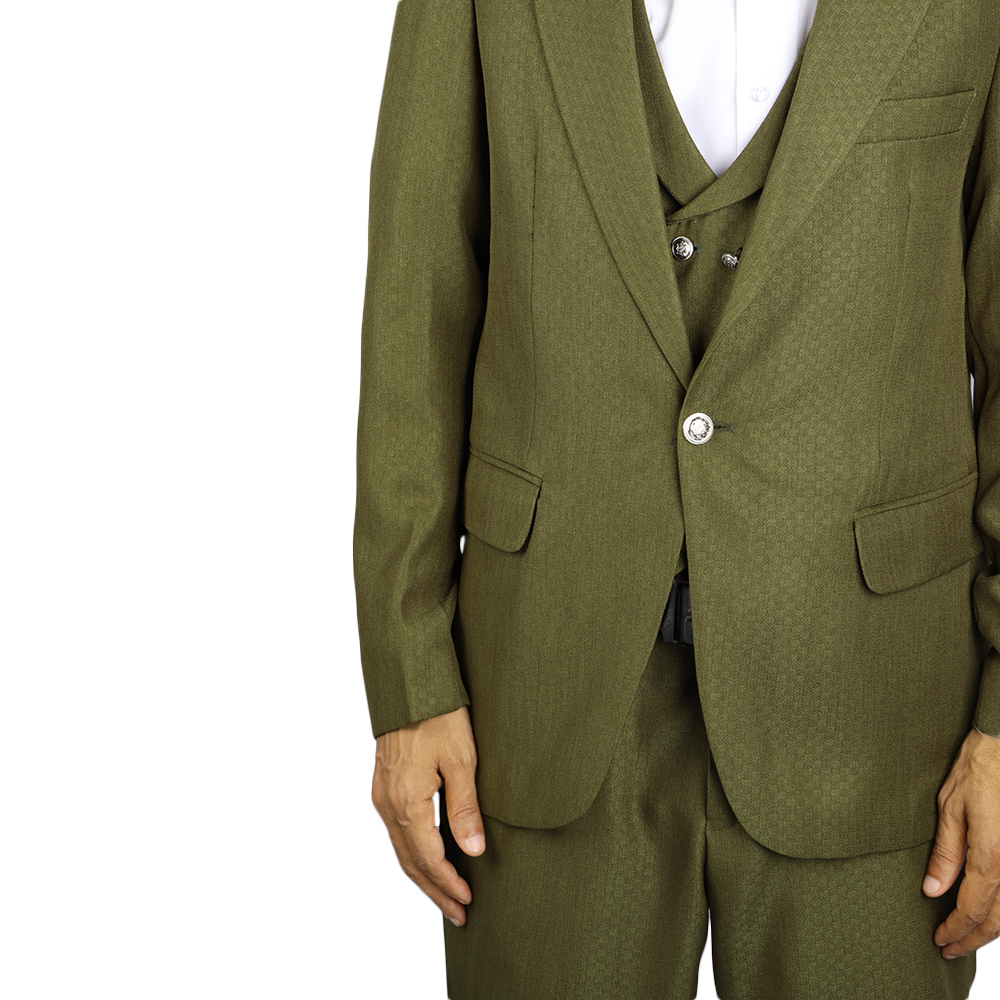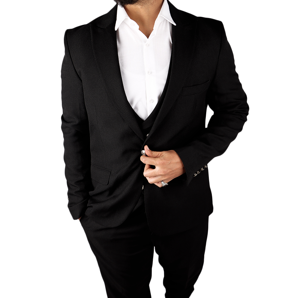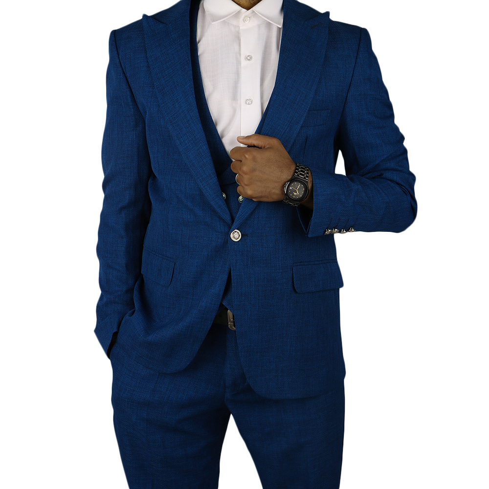 بدلة رجالية فاخرة بتصميم كلاسيكي أنيق مع صديري داخلي مزين بأزرار معدنية مميزة. خيار مثالي لإطلالة راقية في المناسبات الرسمية والحفلات والأعراس.