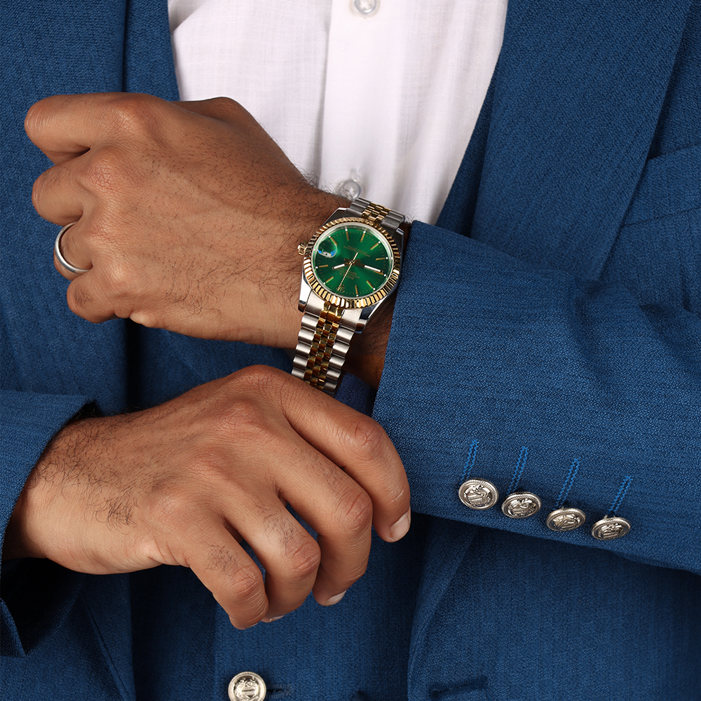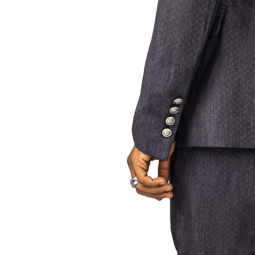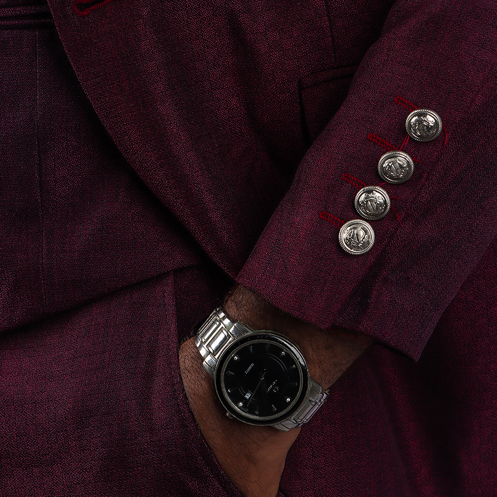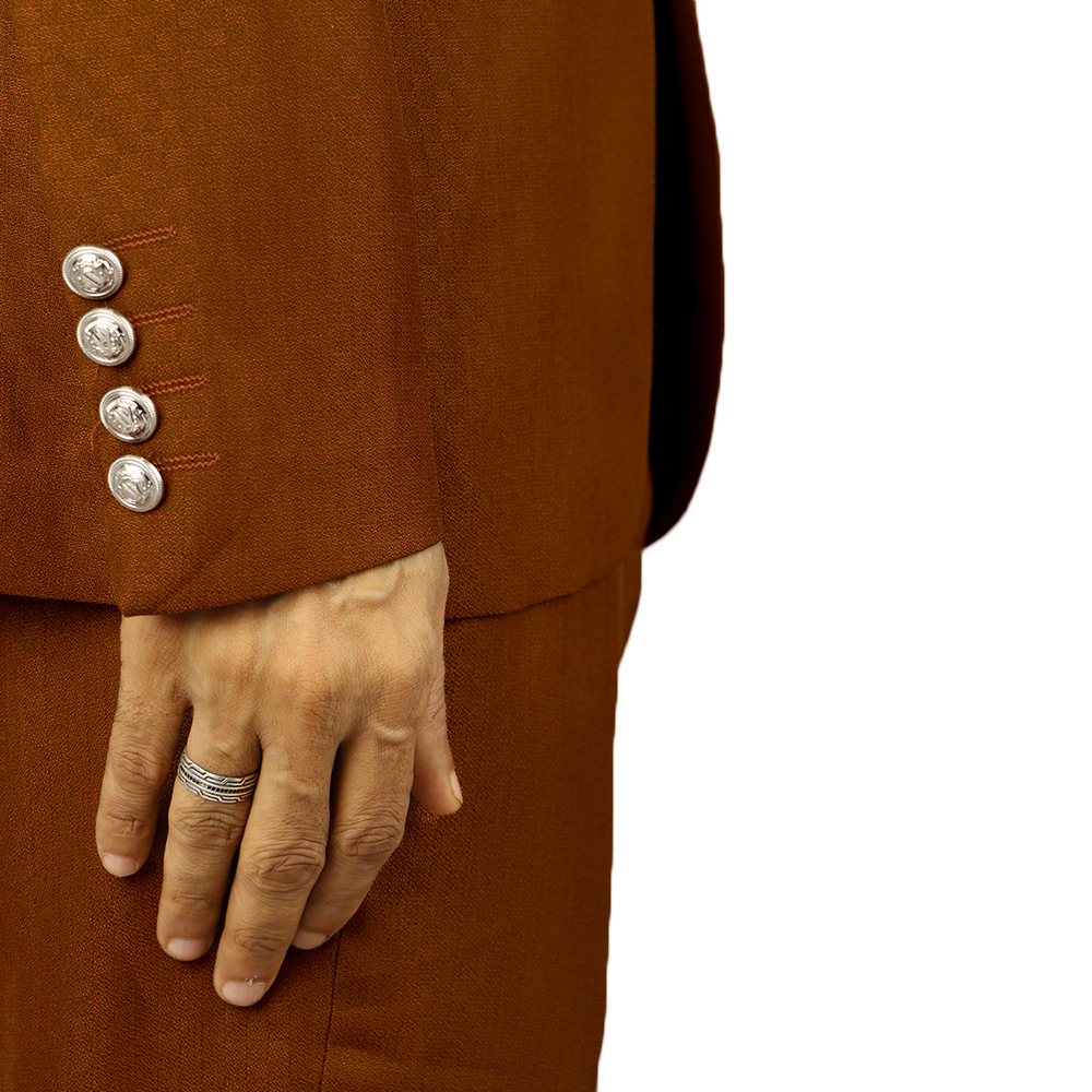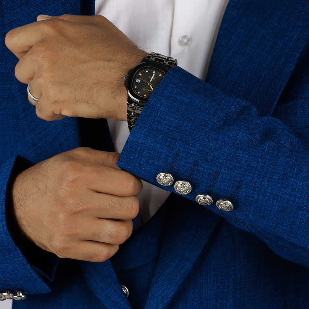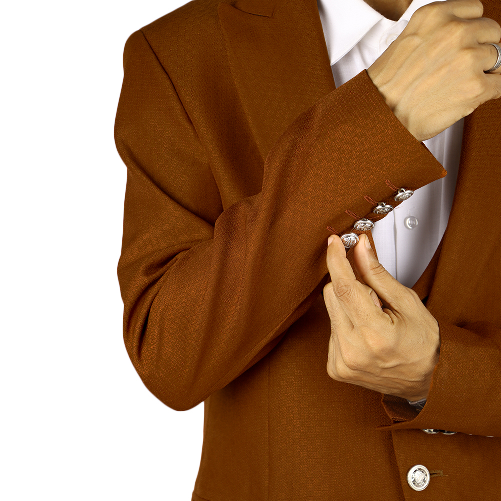 بدلة رجالية فاخرة بتصميم كلاسيكي أنيق مع صديري داخلي مزين بأزرار معدنية مميزة. خيار مثالي لإطلالة راقية في المناسبات الرسمية والحفلات والأعراس.